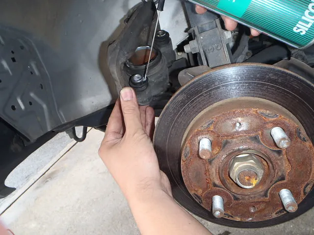 ブレーキパッドの偏摩耗を減らす目的の清掃、潤滑注油作業です。