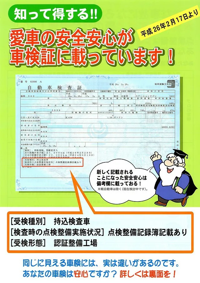 後日、有効期限更新された「車検証」、「作業点検記録簿」を渡します。